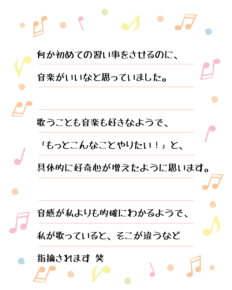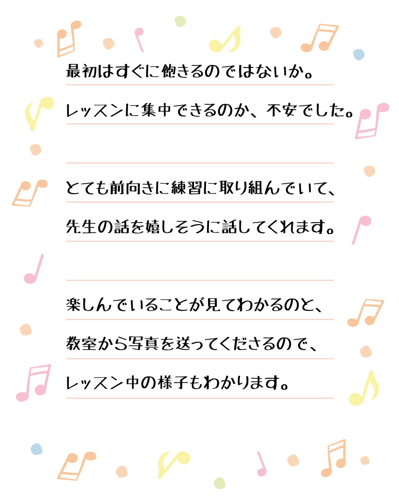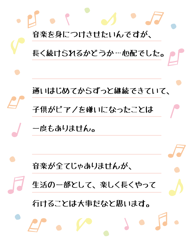 今ではご両親が「もっとピアノの時間を過ごさせてあげたい」と、生徒さんがピアノと触れ合う時間が長くなっています。